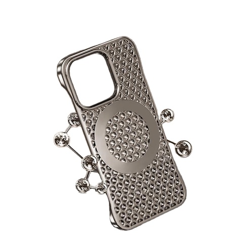 Funda de teléfono dura de PC galvanizada de primera calidad con diseño de disipación de calor de nido de abeja, soporte giroscópico para iPhone 16 15 14 13 Pro Max